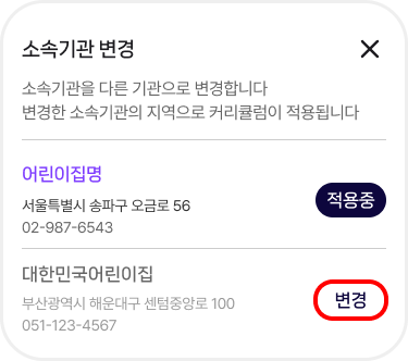 2. 여러 기관 소속 시, 상단 프로필의 집 모양 아이콘을 통해 원하는 기관을 선택할 수 있습니다.