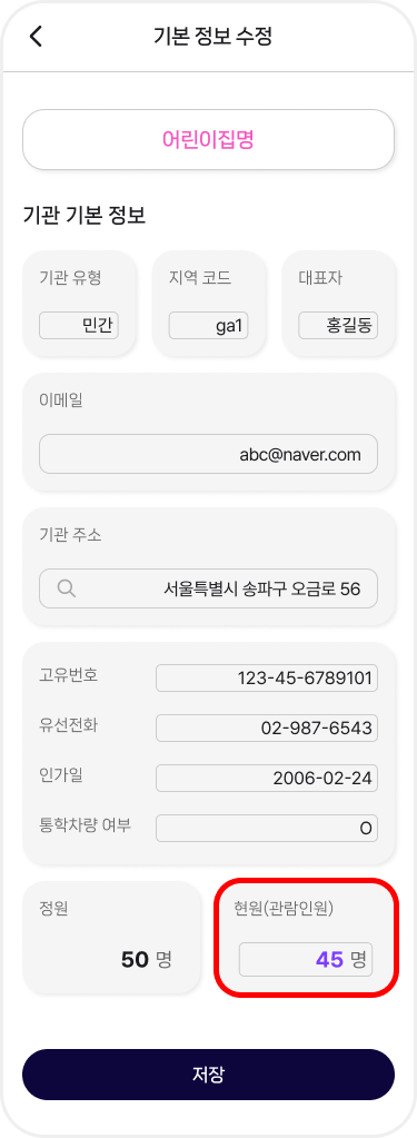 운영현황은 [내 정보 > 기관 선택 > 기관 정보 > 기본 정보]에서 정보 수정 버튼을 통해 수정 가능합니다.