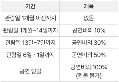 취소 시 기간에 따른 취소 수수료 발생하며, 아래와 같습니다.