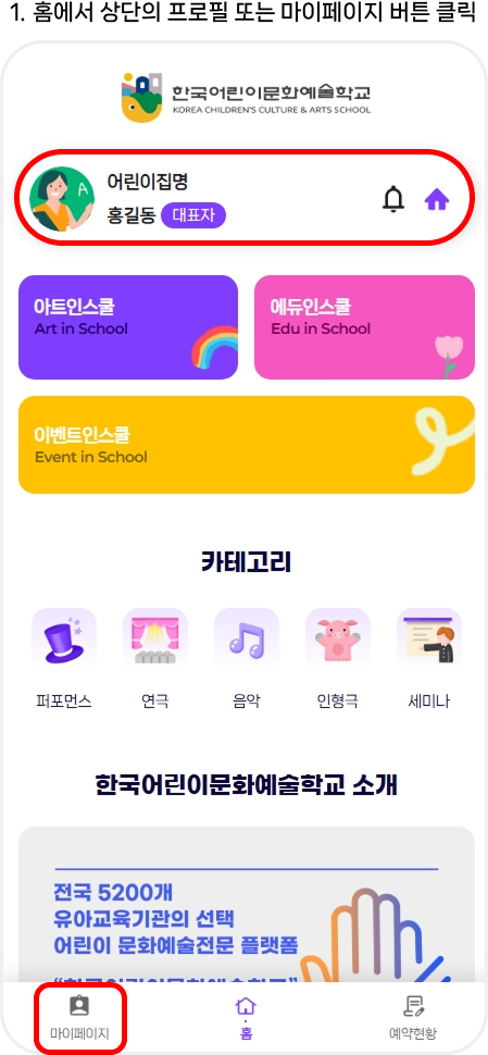 2) 부모교육 세미나와 아트인스쿨 공연의 경우, 예약금 납부 후 공연 2주 전까지 잔금 납부 순서로 결제가 이루어집니다.