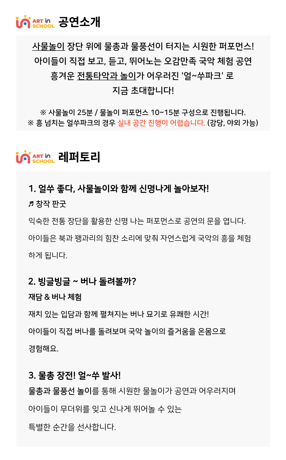 예약을 희망하실 경우, 하단 "우리동네 아트인스쿨 신청하기" 버튼을 클릭하여 예약신청을 진행해 주세요.
