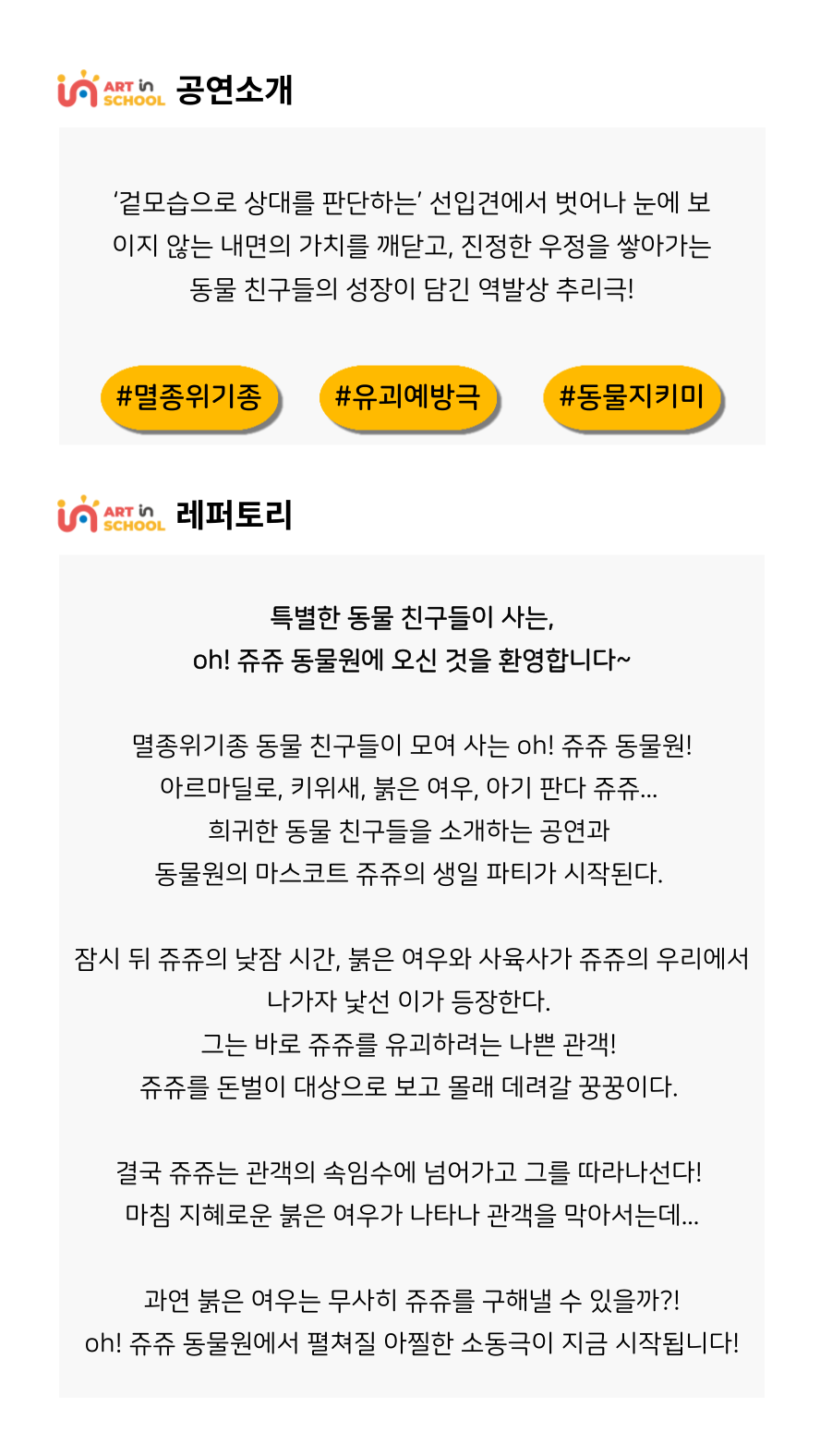 특별한 동물들이 사는 oh! 쥬쥬 동물원에서 벌어진 아기 판다 쥬쥬 유괴 소동을 통해 멸종위기 동물 보호의 중요성을 깨닫는 이야기.